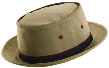 The Dorfman Pacific roll up bucket hat is an all-around hat for playing golf, fishing, gardening, relaxing or just about anything. Made of poplin, it is a great way to cover your head and ears and when you're ready just roll it up and go. It has 4 stitched air vents, a poplin sweatband and a double pleated band in contrasting colors.