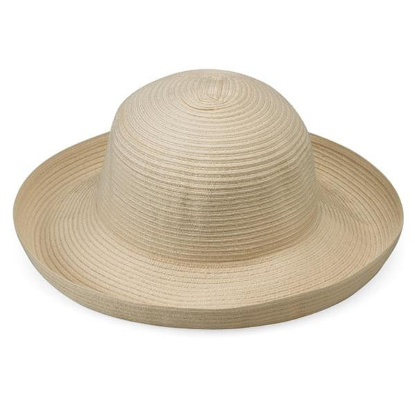 The Sydney is made with fibers of matching colors woven together into a thin, breathable polyester braid. The classic version has a 3-3/4" brim with stylish turned- up edges. An internal drawstring adjusts fit. Rolls up for packing. 100% poly-braid. Handwash cold.